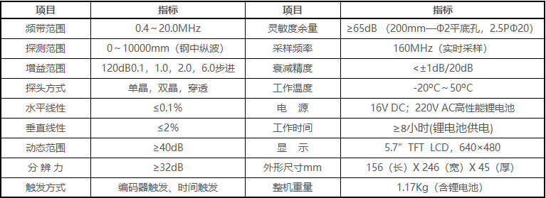 - 4個快捷功能鍵可自由設(shè)置,便于操作與探傷。