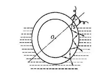 由于被探鋼管浸在水里,當(dāng)超聲橫波在管壁內(nèi)鋸齒形傳播時(shí),通過(guò)波型轉(zhuǎn)換,在鋼管表面與水的界面上,又轉(zhuǎn)換成折射縱波,這樣將會(huì)造成一部分能量損失,導(dǎo)致探傷靈敏度降低。