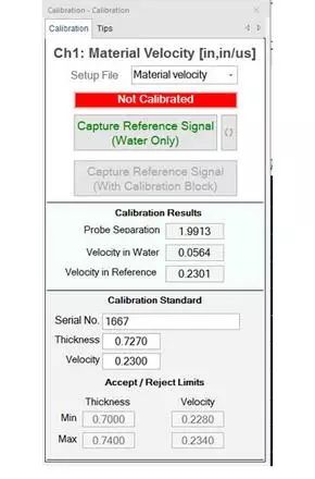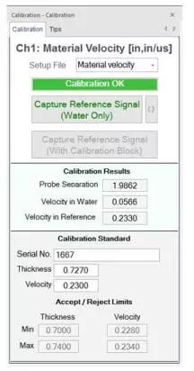 在調(diào)整界面輸入?yún)⒖艰T件的序列號、厚度以及聲速等信息